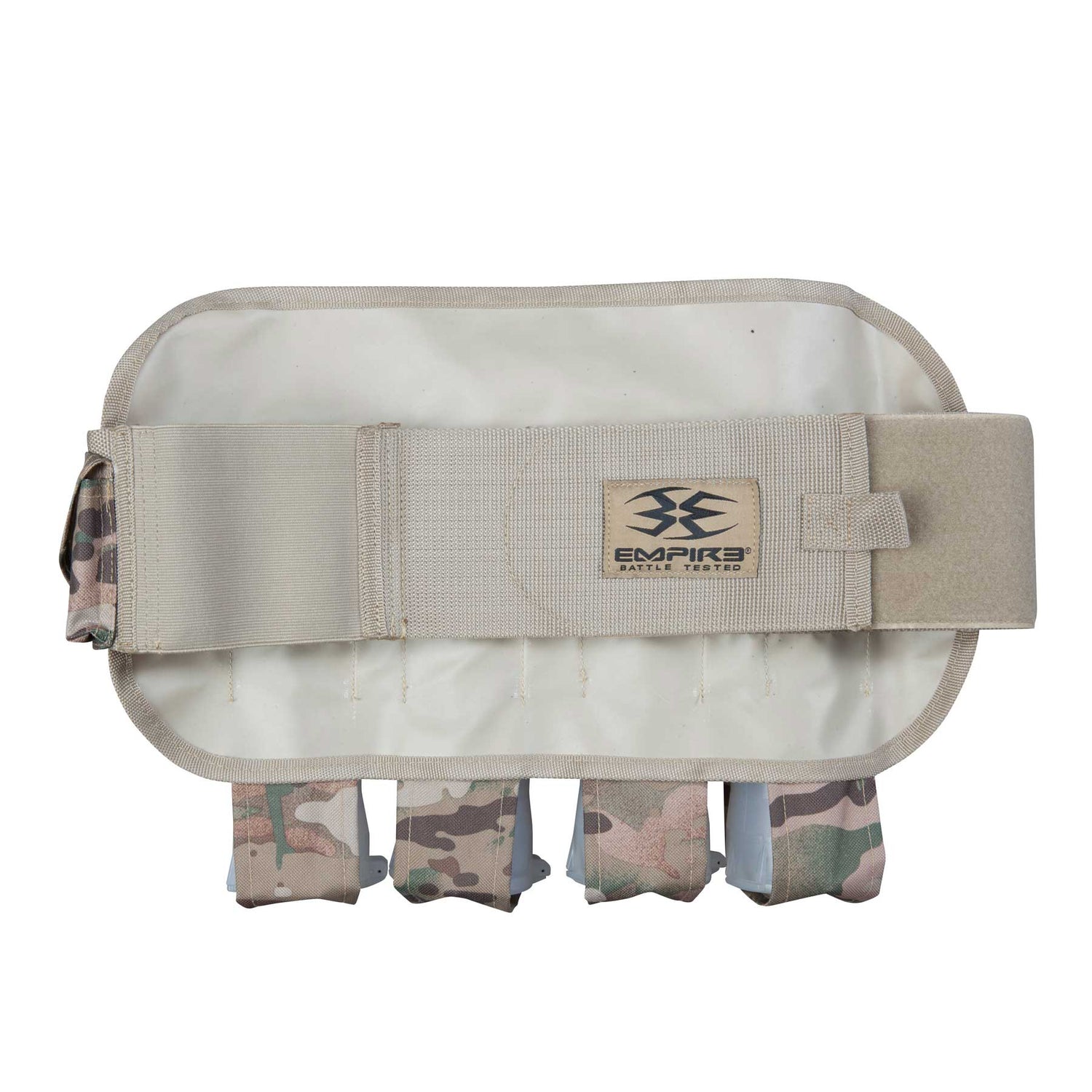 The Empire Battle Tested 4 Pod Vertical Paintball Harness, features sure-fit VelcroTM waist band to hold pods in place. Holding four, 140-round pods (not included).
