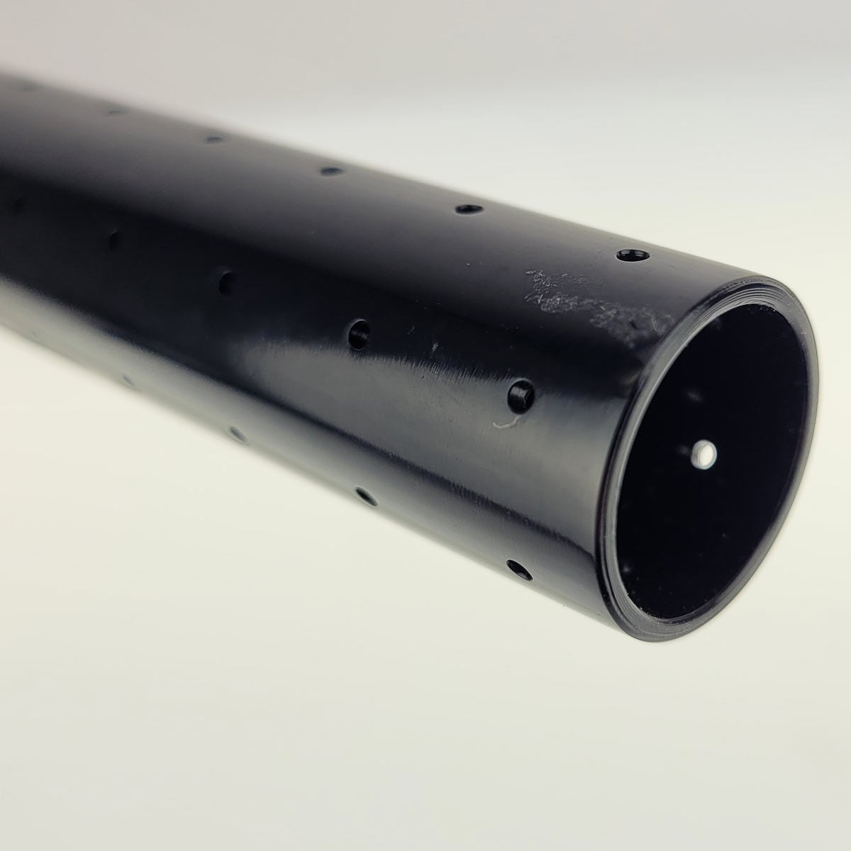 This has a one piece barrel. It is electronic and has an upgraded Virtue board inside that you can customize different settings. This is a low pressure electronic marker so it requires a compressed air tank to work. The mini has anti-chop eyes and shoots great! It also has an upgraded trigger. Check out the pictures for details.
