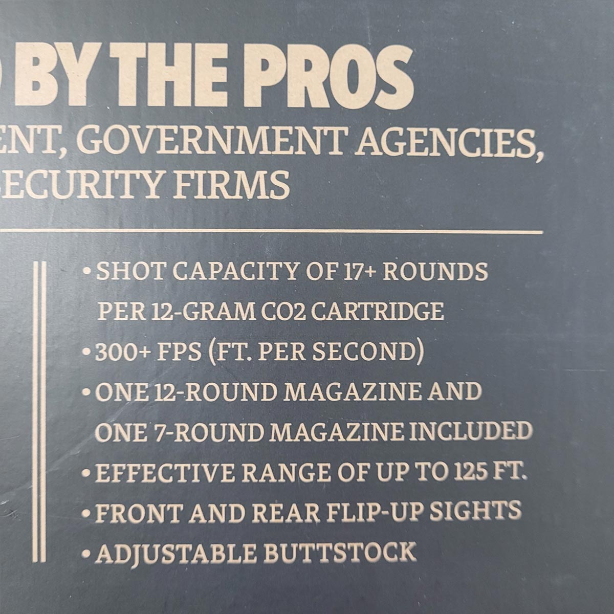 This is a used Byrna TCR Defense Launcher. Included are the Byrna TCR launcher, one 12 round magazine, one 7 round magazine, a Reflex Sight 4 Reticle Red/Green, a purple laser, and the original box. The box is in rough condition.