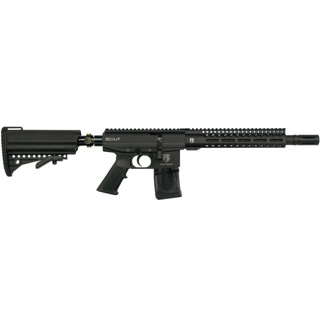 The First Strike T15 Scout Mag Fed Bolt Action paintball marker is for those wanting a true sniper paintball marker. The T15 Scout is a bolt/pump paintball marker so there is no semi-automatic shooting on this one. It will come with two 11 round magazines that will shoot round ball or First Strike rounds. The First Strike T15 Scout features an integrated 13ci/3000psi tank/stock combo.