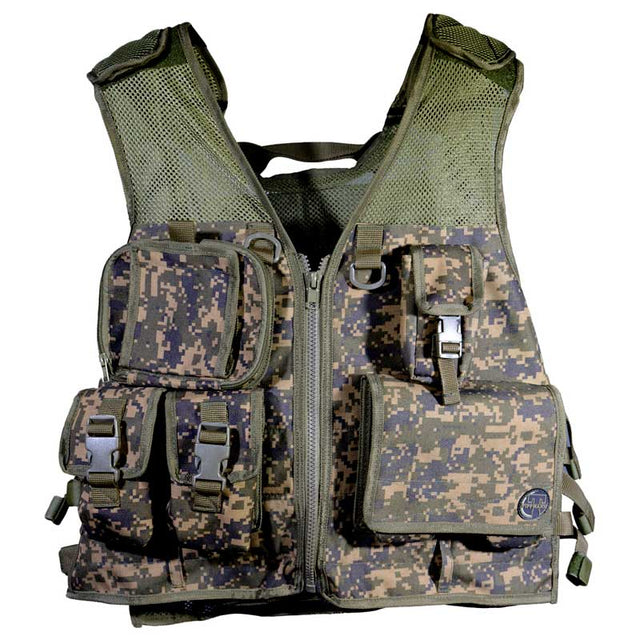The new Tippmann Pro Vest features breathable lightweight nylon webbed meshing and Tippmann’s proprietary digi camo that is used across Tippmann’s camo line of gear. The Pro Vest has many high performance features including an Integrated Body Wrap Belt and Four Rigid Pod Sleeves on the back with Strong Pull Tabs. Two expandable pod sleeves allow the player to add two more pods when needed. A variety of pockets on the front accommodate map storage, communication pocket, ID storage, and additional storage including CO2 cartridges and magazines. An integrated horizontal tank storage pouch completes this vest allowing for the player to use a remote line and increase the realism of play. The Pro Vest is One Size Fits All.