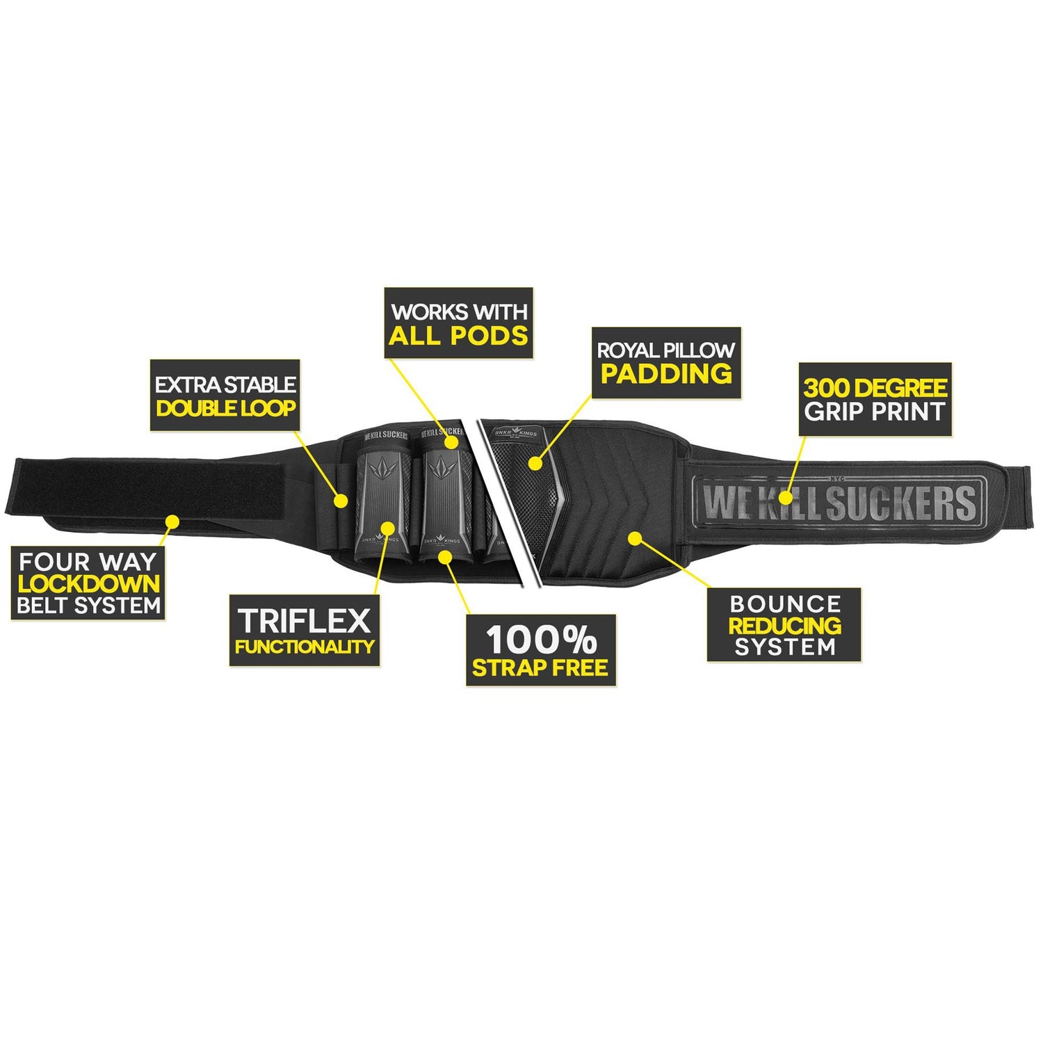 Light-years ahead of the competition, the Bunkerkings WKS Supreme Pack is a fifth generation upgrade to the original revolutionary BK Supreme pack. With its lightning speed one handed load and unload functionality simple enough for anyone to load like a pro. The patented pod holding technology makes you able to load any size pod with no adjustments needed. The belt is the is the perfect combination of comfort and stability with a friction foam pad and a four way lock down system. It also has the strongest Velcro available which will hold your harness and pods securely as you slide in to the next bunker.