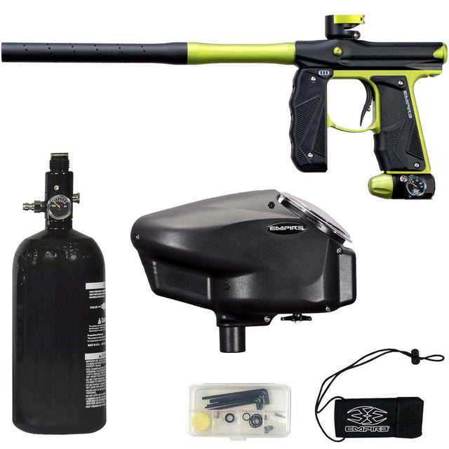 Empire Mini GS Paintball Gun Black / Lime Green Dust w 2 PC Barrel Rookie Package