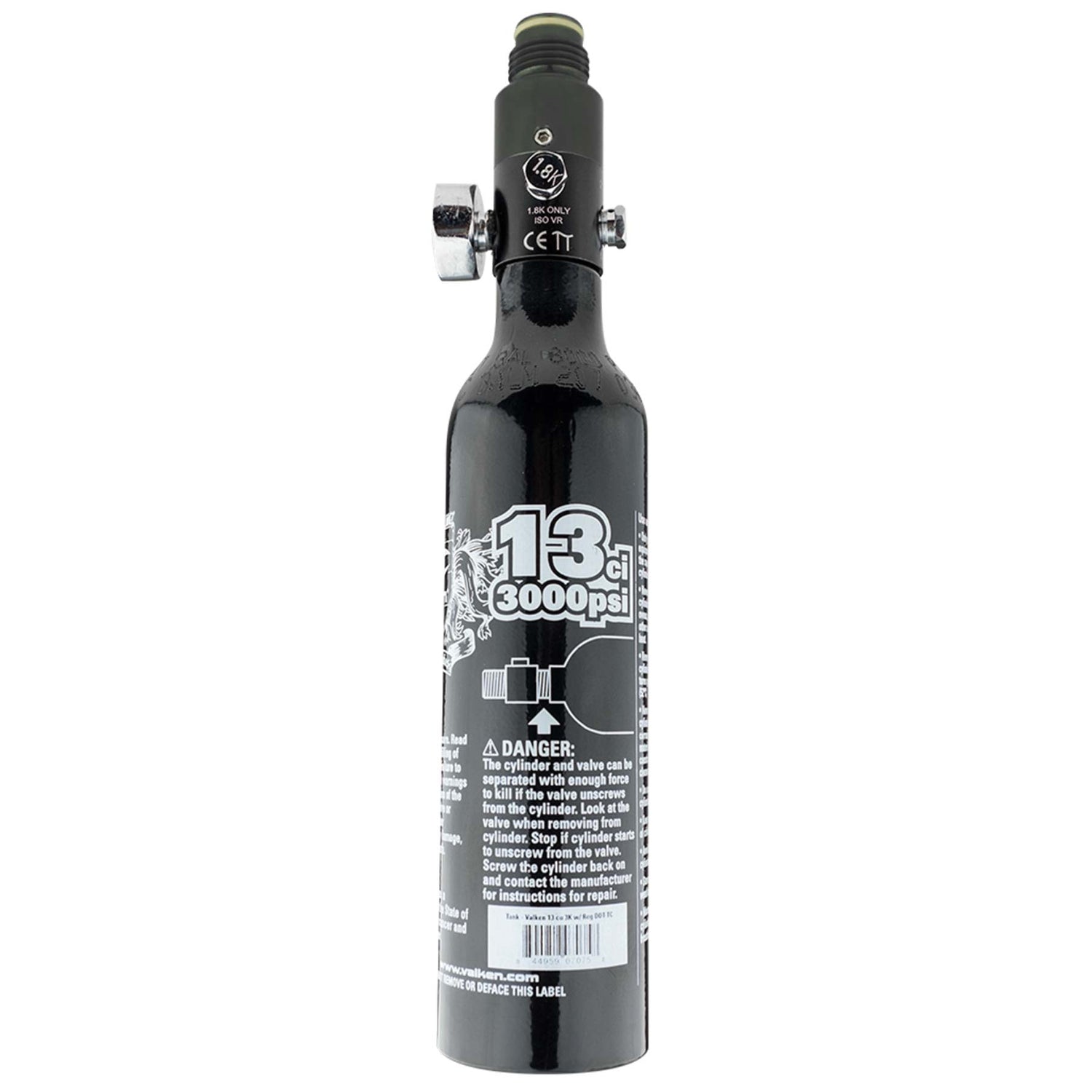 13 ci 3000 PSI compressed air tank by Valken. 800 psi output pressure. Great for those Mag Fed paintball markers. DOT and TC approved aluminum cylinder.