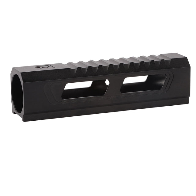 Precision machined from a solid billet of aircraft-grade aluminum, the the Exalt TipX barrel shroud is skeletonized to reduce weight and show off your choice of barrel. Offered in a variety of finishes, add some flair to your Tippmann TiPX pistol with the Precision Barrel Shroud.