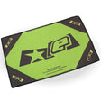 This large Dual Sided Microfiber work wonders on a dirty lens. It comes with 2 Carabiner clips so it can by hung in your pits or staging area for ease of use. The solid green side is a plush pile microfiber great for removing mass amounts of paint off a lens, the graphic side is a smooth weave microfiber designed for polishing and removing streaks of oil residue and paint.