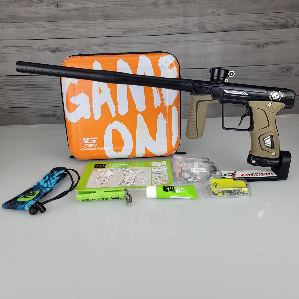 This is a used Planet Eclipse Infamous Gtek 170R in black. It is in very good condition and includes the case and everything in the picture.
